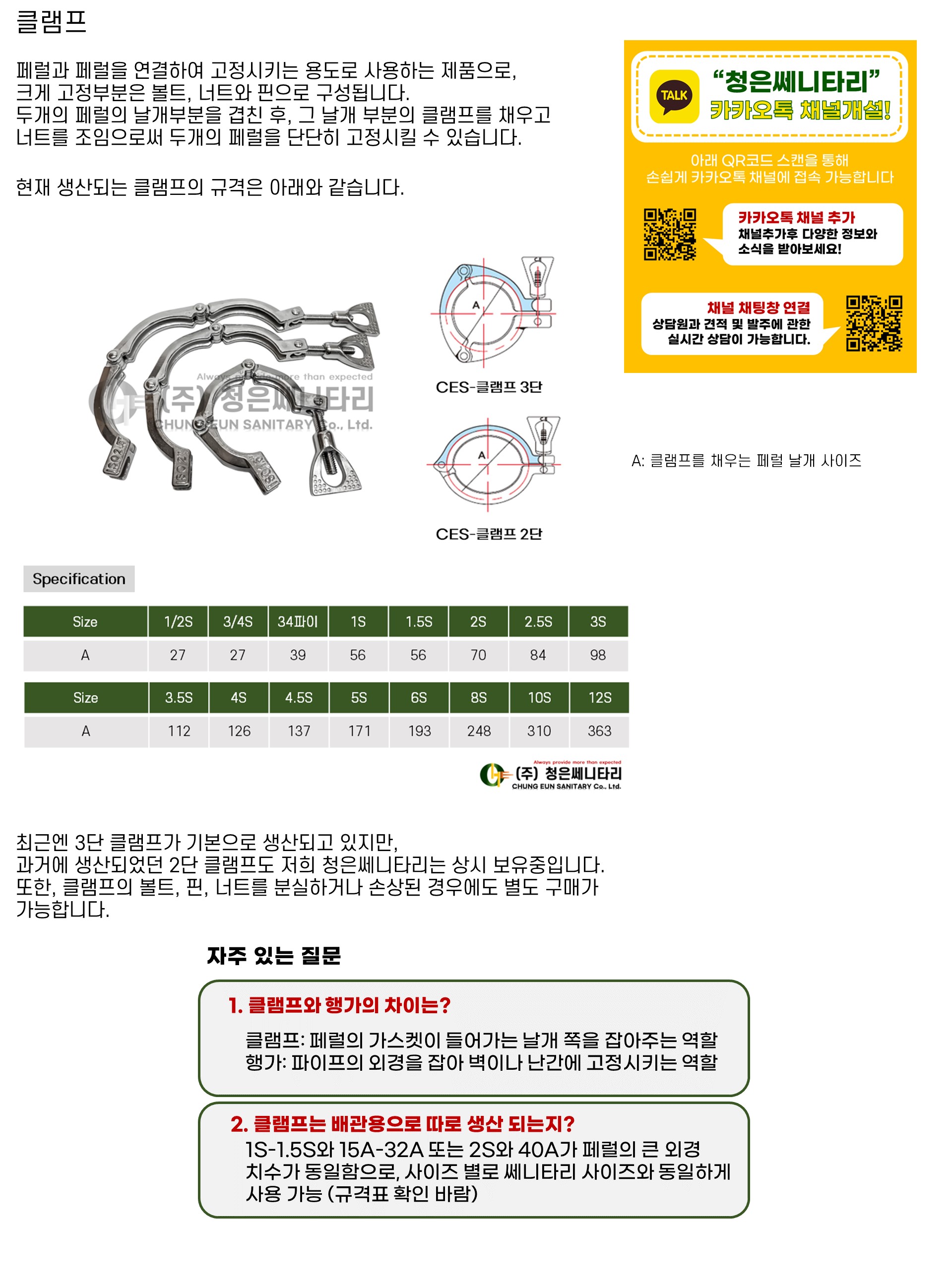 쎄니타리 클램프 (2단/3단) (SUS304)
