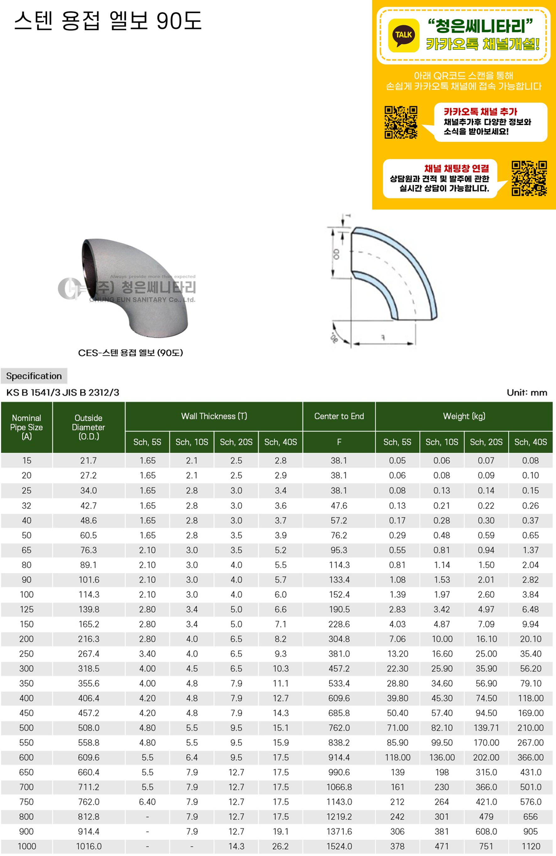 [국산] 스텐용접엘보90도 S/40 (SUS316L)