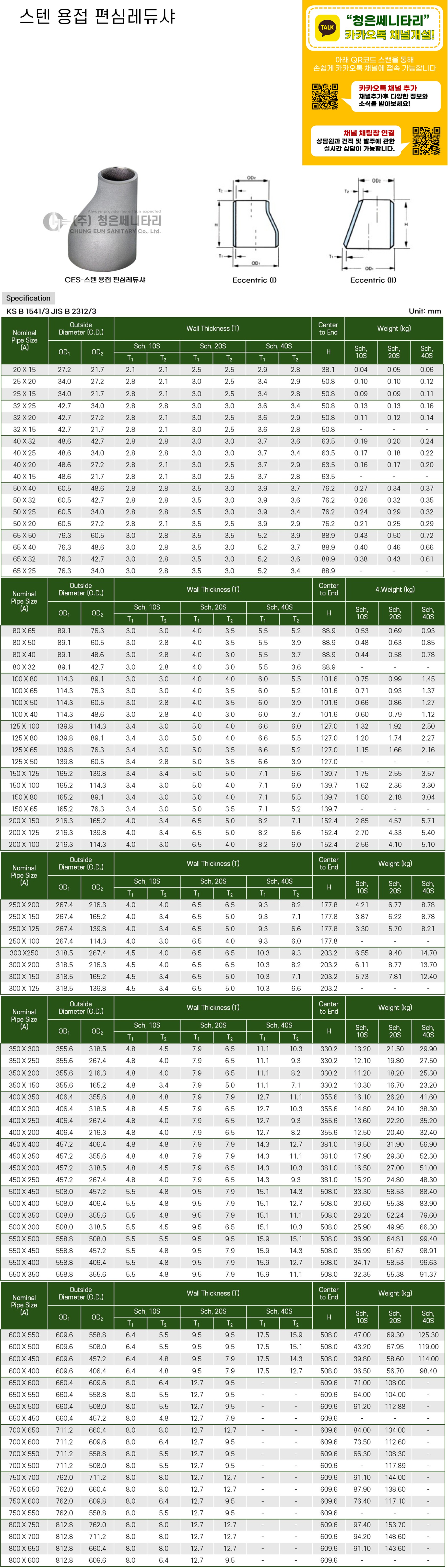 [국산] 스텐용접 편심레듀샤 S/10 (SUS304)