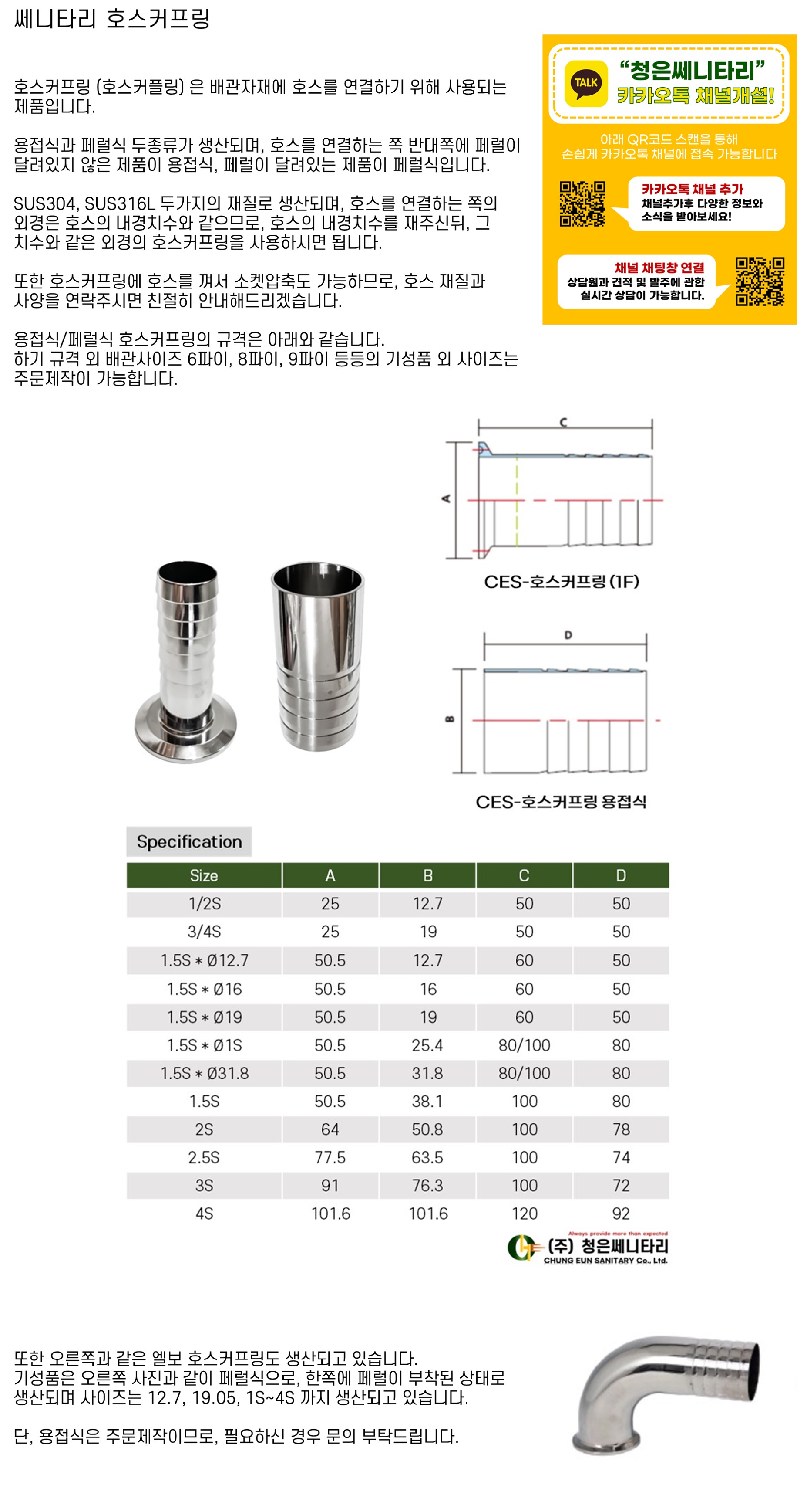 쎄니타리 호스커프링 1페럴 (SUS304, SUS316L)