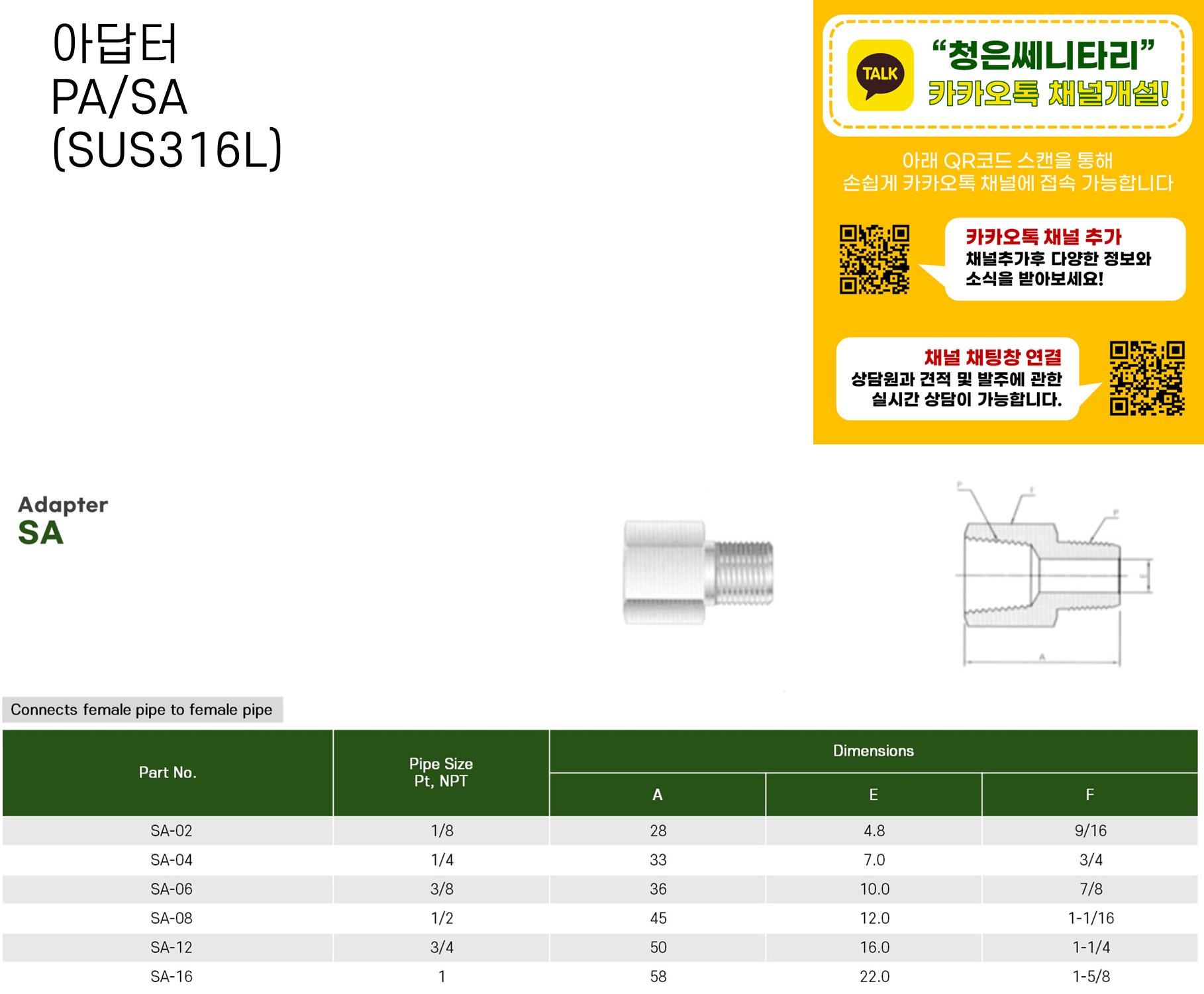 아답터 PA/SA (SUS316L)