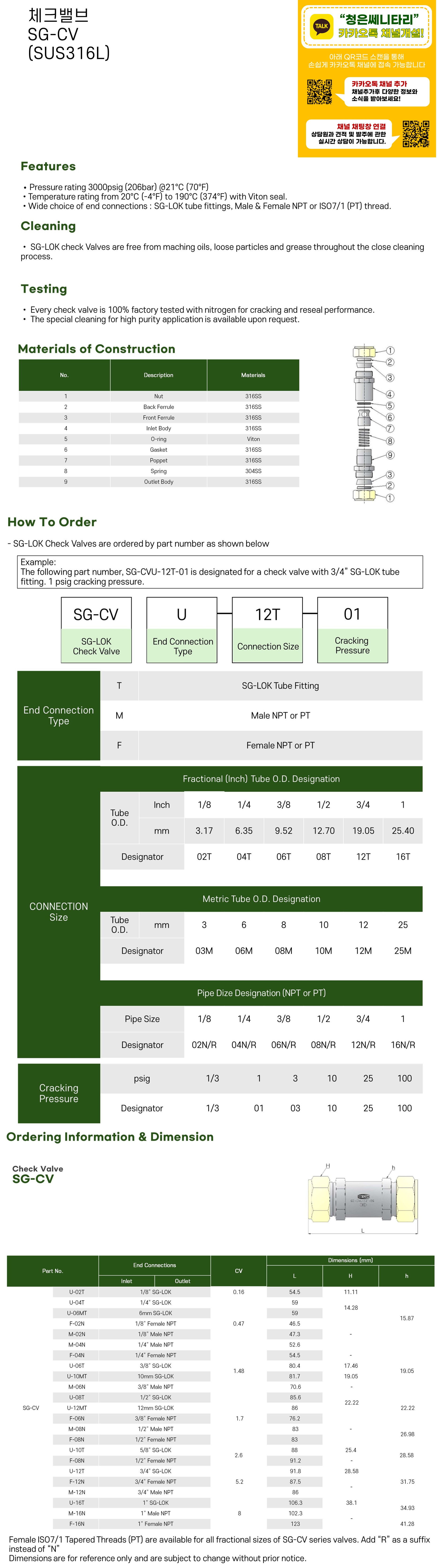 체크밸브 SG-CVU/SG-CVF (SUS316L)