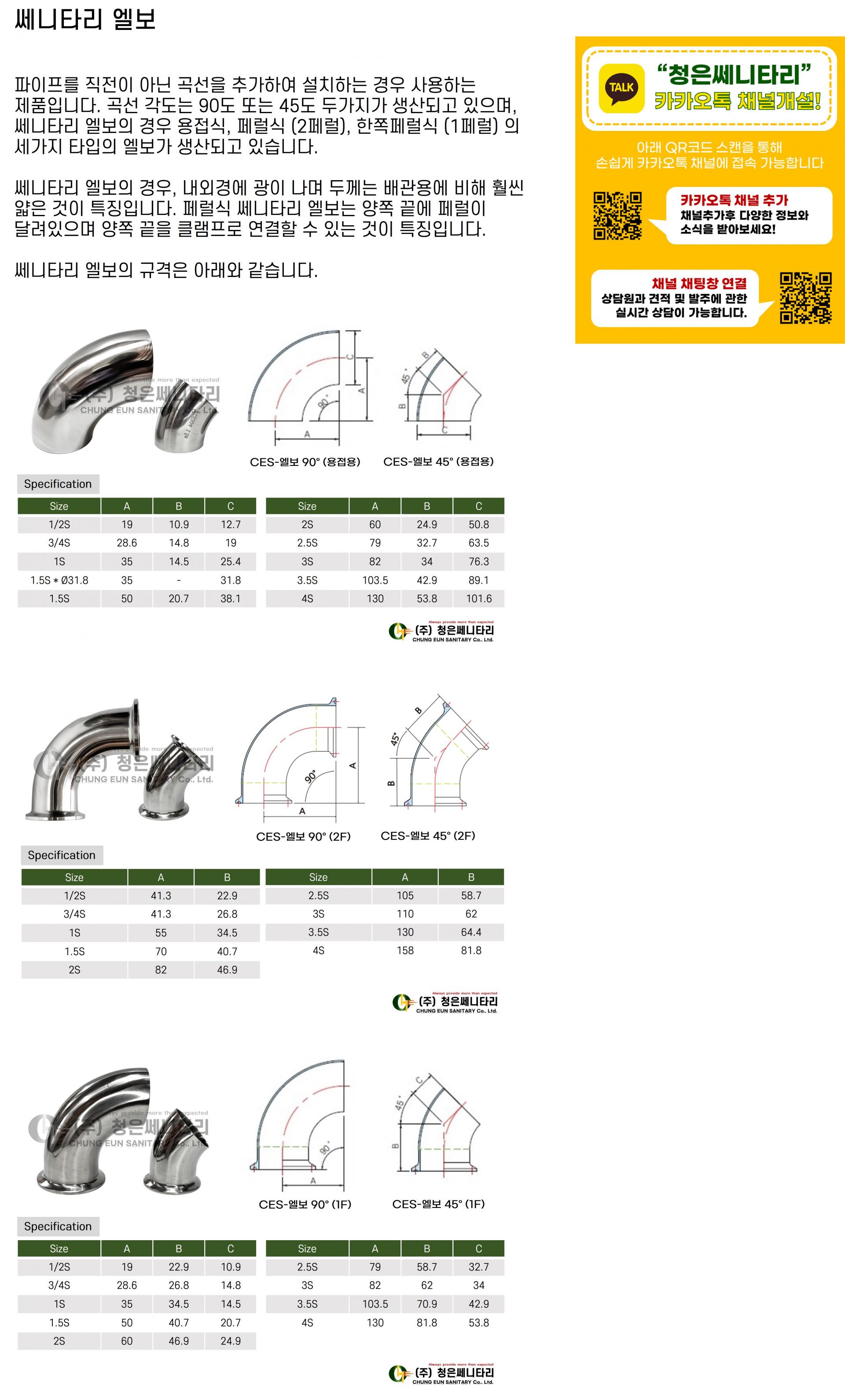 쎄니타리 엘보 1페럴 90도 (SUIS304, SUS316L)